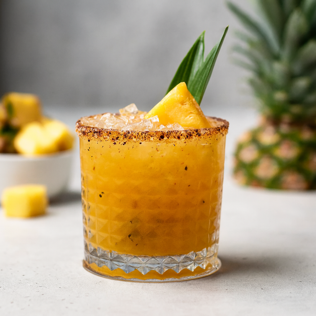 - Garnish with a pineapple chunk and a pineapple leaf. Serve immediately.